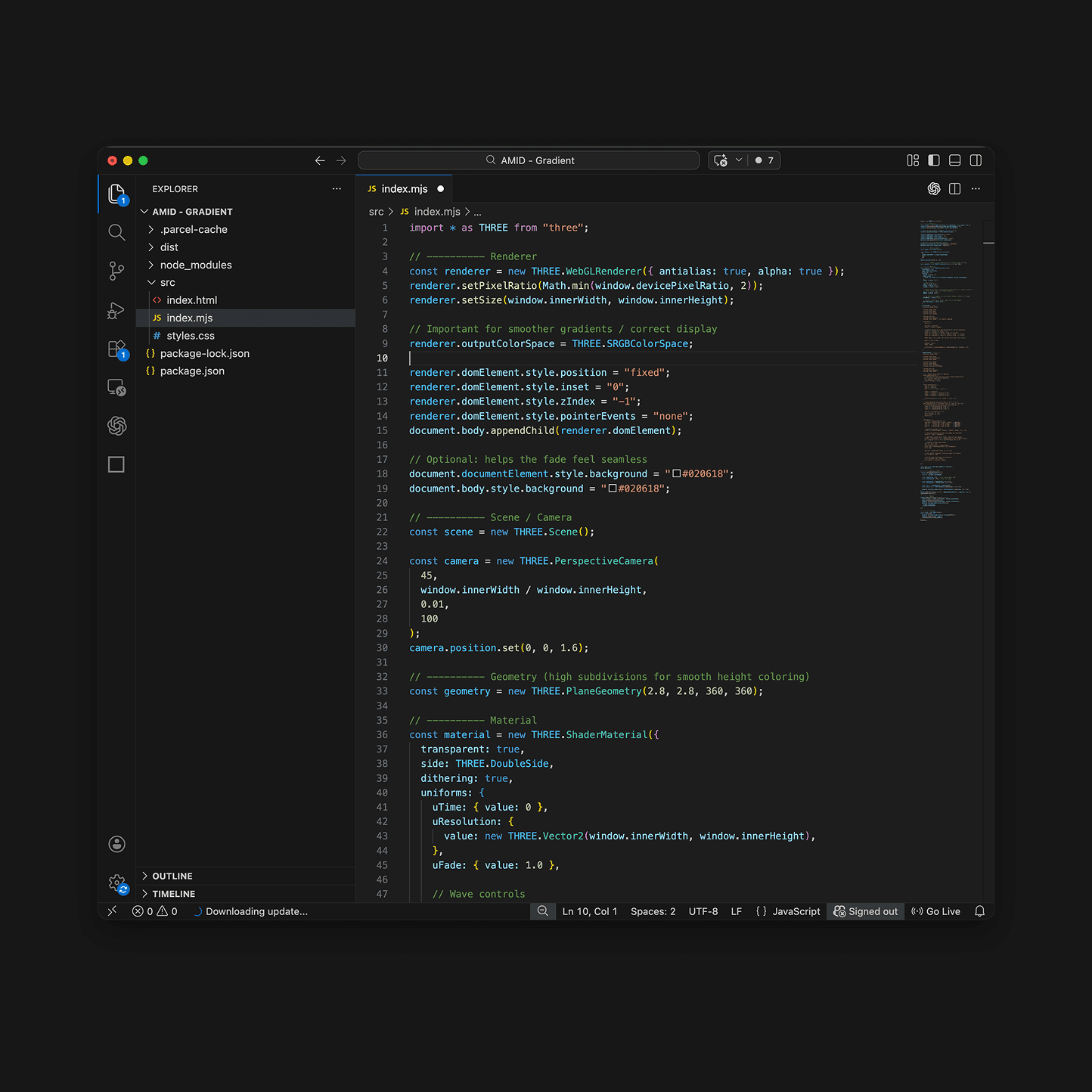 Hero “Aurora” three.js Element